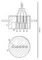 As illustrated inFIG. 1, flexible multi-conductor cable112 (and more particularly its constituentelectrical leads402,404 and possibly others) couple to thewand connector114.Wand connector114 couples thecontroller104, and more particularly thecontroller connector120.FIG. 5 shows both a cross-sectional view (right) and an end elevation view (left) ofwand connector114 in accordance with at least some embodiments. In particular,wand connector114 comprises atab500.Tab500 works in conjunction with a slot on controller connector120 (shown inFIG. 6) to ensure that thewand connector114 andcontroller connector120 only couple in one relative orientation. Theillustrative wand connector114 further comprises a plurality ofelectrical pins502 protruding fromwand connector114. In many cases, theelectrical pins502 are coupled one each to an electrical lead of electrical leads504 (two of which may be leads402 and404 ofFIG. 4A andFIG. 4B). Stated otherwise, in particular embodiments eachelectrical pin502 couples to a single electrical lead, and thus each illustrativeelectrical pin502 couples to a single electrode of thewand102. In other cases, a singleelectrical pin502 couples to multiple electrodes on theelectrosurgical wand102. WhileFIG. 5 shows four illustrative electrical pins, in some embodiments as few as two electrical pins, and as many as 26 electrical pins, may be present in thewand connector114.