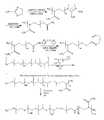 EXAMPLESExample 1Block Copolymer Functionality can be Designed to Enable Hydrolytic and Oxidative SensitivityPPS serves as a useful hydrophobic block in micelle and vesicle formation, as it can be oxidized to form the hydrophilic sulfone and sulfoxide products, after which it can presumably be excreted from the body by renal filtration. It is possible to build into the block copolymeric amphiphile other degradable segments, for example hydrolyzable chemical moieties. Such moieties may be placed within the hydrophilic domain of the block copolymer, so that moieties' accessibility to water does not become a limiting factor in hydrolysis rate and thus release rate. One route by which to accomplish this is shown inFIG. 1.