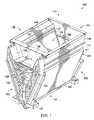 Further, in some embodiments, the left andright slab caps144,146 may extend through therear barrier138 associated with the fronthigh pressure zone126 and/or theupper barrier142 associated with the rearhigh pressure zone128. In such cases, theupper barrier142 and therear barrier138 may comprise slots156 (shown in greater detail inFIG. 6) generally shaped complementary to theslab caps144,146 but also sized and/or shaped to provide an air leakage path, a pressure tap to thelow pressure zone124, and/or to otherwise allow air to transfer between thelow pressure zone124 and one or both of the front and rearhigh pressure zones126,128. In some cases, air may flow from front and rearhigh pressure zones126,128 via theslots156 to the relatively lower pressure space oflow pressure zone124. In some cases, by connecting thelow pressure zone124 to the front and/or rearhigh pressure zones126,128 in the controlled manner as described above, the airflow through theslots156 may impede, reduce, and/or prevent condensation from exiting thelow pressure zone124. In some cases, the airflow obtained via the above-described interconnection between pressure zones in combination with the velocity reduction achieved by disturbing the air with thedisturbers152,154 may enable more condensation to remain attached to thecoil assembly114 rather than becoming entrained in the primary airflow and undesirably carried out of thecoil assembly114. The condensation that remains attached to thecoil assembly114 may accordingly be gravity driven to fall or otherwise follow component surfaces to drainpan130. In alternative embodiments, a different number of and/or differently shaped and/or configured high pressure zones, a different number of and/or differently shaped and/or configured flow paths between pressure zones, and/or a different number of and/or differently shaped and/or configured airflow disturbers may be utilized to provide a reduction in a velocity of a portion of a downstream portion of a primary airflow.