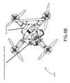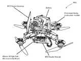 Turning toFIGS. 8A-8C, views800a-cof an example automated inventory data acquisition device are shown. As shown, an automated inventory data acquisition device can be implemented as a multi-rotor UAV equipped with navigation and data collections sensors for navigating to locations within a retail site, hovering in a position, and performing certain retail management tasks, such as tasks supports compliance checks, inventory cycle counts, among other examples. InFIG. 8A, aview800ais shown showing views of the rotors of the automated inventory data acquisition device, an RFID reader module, mission and flight path microcontroller board (e.g., implementing navigation and flight control), and an RFID reader antenna.FIG. 8B is a top view of the automated inventory data acquisition device, showing the positioning of an example downward-facing echolocation module (e.g., to determine changes in elevation, contours of underlying terrain, and the presence of obstacles beneath the UAV while airborne), and a battery, such as a rechargeable battery (e.g., capable of being charged at a home base configured for the UAV device.FIG. 8C is another perspective view of the example automated inventory data acquisition device.