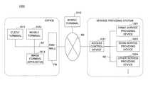 In theinformation processing system1000 ofFIG. 1, theaccess control device1021, the printservice providing device1022, the scanservice providing device1023, and the otherservice providing device1024 realize the service providing system. The printservice providing device1022, the scanservice providing device1023, and the otherservice providing device1024 provide a print service, a scan service, and other services.