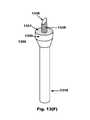 In alternative embodiment of the invention, as shown inFIGS. 13C and 13J, acylinder1335 or round faced trumpet designed tip with a diameter of approximately 3 mm is mounted on adisc1330 with a diameter of 1.5 cm. In another embodiment of the invention, acylinder1335 with a diameter of approximately 6 mm is mounted on adisc1330 with a diameter of 3 cm.FIG. 13D shows theface1336 of thecylinder1335 and theface1331 of thedisc1330.FIG. 13G shows arounded end1336 of thecylinder1335 and theface1331 of thedisc1330. As shown inFIGS. 13C and 13J theface1336 of thecylinder1335 is covered withabrasive fibers1337 and theface1331 of thedisc1330 is also covered withabrasive fibers1332. InFIG. 13C the disc is circular, while inFIG. 13J the disc is trapezoid. In an embodiment of the invention, the face of the cylinder is covered with 3 mm long hooked Kylon® fibers and the face of the disc is also covered with 3 mm long Kylon® fibers. In another alternative embodiment of the invention, as shown inFIG. 13E, the surface of thecylinder1335 is covered withabrasive fibers1337 and theface1331 of thedisc1330 is also covered withabrasive fibers1332. In an embodiment of the invention, the surface of the cylinder is covered with 3 mm long Kylon® fibers and the face of the disc is also covered with 3 mm long Kylon® fibers.