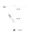 FIGS.2(A)-(C) shows an apparatus for frictional trans-epithelial tissue disruption of an epithelial lined canal surface with tapered cone tip.FIG. 2(A) shows a side view,FIG. 2(B) shows an oblique view,FIG. 2(C) shows a top view;