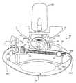 Strap coupler26 may include any structure or apparatus to allowattachment mechanism78 to pivot about an axis substantially parallel to pivot axis72. For example, opening82 is wider thanattachment member78 in a direction horizontally perpendicular to pivot axis72, as shown, to allowattachment member78 to pivot about a pivot axis substantially parallel to pivot axis72 whencam lever86 is in the up position. As shown inFIG. 2, opening80 is similarly dimensioned asattachment member78 in a direction substantially horizontally perpendicular to pivot axis72, which may causeattachment member78 to pivot (e.g., about pivot axis94) with mountinginterface66 when mountinginterface66 is rotated about pivot axis72.