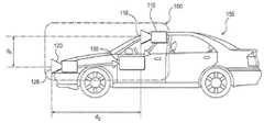 Referring to the accompanying drawings,FIG. 1ais a diagrammatic, side view representation of an exemplary vehicle imaging system consistent with the presently disclosed.FIG. 1bis diagrammatic, top view illustration of the embodiment shown inFIG. 1a. As illustrated inFIG. 1a, a disclosed embodiment of the present invention may include avehicle150 having asystem100 with a firstimage capture device110 and a secondimage capture device120 and aprocessor130. While twoimage capture devices110 and120 are shown, it should be understood that other embodiments may include more than two image capture devices.