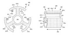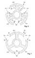Thebody402 includes acentral hub414 with alongitudinal surface424.Stimulation members418a,418b, and418care coupled to thecentral hub414 viaconnector elements422a,422b, and422c, respectively, extending radially from thelongitudinal surface424 of thecentral hub414. InFIGS. 4A and 4B (and in other figures) thestimulation members418a,418b, and418care each shown coupled to thecentral hub414 by asingle connector element422a,422b, or422c. In at least some embodiments, at least one of thestimulation members418a,418b, and418cis coupled to thecentral hub414 bymultiple connector elements422a,422b, or422c.