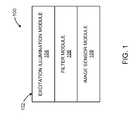 FIG. 3 is a diagram illustrating an exemplary functional indicia imaging unit comprising an excitation illumination module, a filter module, and an imaging module;