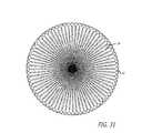 Device embodiments10 and components thereof discussed herein may take on a large variety of configurations to achieve specific or generally desirable clinical results. In somedevice embodiments10, the start of the braided structure of thepermeable shell40 may be delayed from theproximal hub68 so that the filaments1 emanate from theproximal hub68 in a spoke-like radial fashion as shown in the proximal end view of a device inFIG. 31. A flattened analog version of the braid pattern ofFIG. 31 is also shown inFIG. 33. This configuration may result in a smaller width gap between thefilaments14 at a given radial distance from theproximal hub68 relative to a fully braided configuration, the flattened analog pattern of which is shown inFIG. 34. This may provide better flow disruption and promote hemostasis in the area of thedevice10 that may be subjected to the highest flow rates.FIG. 32 illustrates a flattened analog representation of a non-braided filament structure for reference.