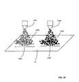 FIG. 30 illustrates how display elements may be delivered to a substrate surface at two or more locations, by the use of multiple delivery devices. First quantity ofdisplay elements1450 is delivered tofirst location1452 onsubstrate10 fromfirst delivery device1454. Second quantity ofdisplay elements1456 is delivered tosecond location1458 onsubstrate10 fromsecond delivery device1460. Substantially the same result could be obtained by using a single delivery device and moving the delivery device (which may be, for example, nozzle, spout, inkjet, pressure jet, sprayer, etc.) with respect to the substrate, or moving the substrate with respect to the delivery device. By delivering different display elements (i.e., different types of display elements or mixtures of the same types of display elements in different proportions) at the different locations, a spatially non-uniform distribution of display elements on the substrate may be obtained.
