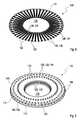 As illustrated inFIGS. 1A and 1B, thefirst component112 can thus be configured for example as an annular disk and can be produced for example completely or partly from a plastic material. Thefirst component112 has a plurality ofreceptacles120, which form parts ofchambers122 in the assembled state of theanalytical magazine110. Thesereceptacles120 andchambers122 can be discerned inFIG. 1B. As can be seen from this illustration, thereceptacles120 in the exemplary embodiment illustrated are arranged radially and have corresponding depressions in thefirst component112. Thereceptacles120 are preferably just wide enough that a puncturing and collecting element, described in greater detail below, as an analytical aid and/or sub-aid, can just be mounted in saidreceptacles120. Accordingly, by way of example, the outer dimensions of thereceptacle120 can correspond to said analytical aids, plus an amount of play, if appropriate, for example in each case a few hundreds of a millimeter in one or more dimensions, in the form of a gap, for example, which can ensure the mobility of the puncturing and collecting elements or analytical aids.