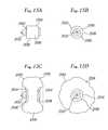 InFIG. 2D, the fastener catheter has been removed from thePFO14, and the trailing suture portions have been cut from thesuture lines46,50 (i.e., thesuture lines46,40 have been cut short adjacent the fastener56). Depending on the particular application and catheters involved, the excess suture portions can be cut by the fastener catheter itself if the fastener catheter is configured to cut suture. The excess suture portions could alternatively be cut by a separate catheter configured to cut suture. Examples of catheters having integrated suture cutting mechanisms are disclosed in pending U.S. patent application Ser. Nos. 11/174,143 and 11/174,357, the contents of each of which are incorporated herein in their entirety by reference. The expandedportion62 of the expandedfastener56 serves to occlude thePFO14 and/or (depending on the particular fastener) serves as a structure over which tissue can form to occlude thePFO14.