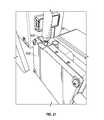 FIG. 21 illustrates a non-limiting example of a NovoGen MMX™ bioprinter including a UV module; in this case, a printer head is positioned such that a capillary tube is entirely introduced to a UV module.