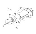 Flexible band member82 is movable about an internal perimeter withininterior chamber28 ofouter housing20 betweenouter housing20 andinner housing insert110. Such movement may be accomplished by provided a mechanism extending fromflexible band member82 through thetubular wall22 ofouter housing20. For example,outer housing20 may include aslot100 extending axially through thetubular wall22 along one side thereof between aforward slot end102 and arearward slot end104.Flexible band member82 may include one ormore fingers94 protruding from the outer surface thereof, which are adapted to extend throughslot100. Aseparate tab member96 may be provided for snap-fitting or other type of engagement withfingers94.Tab member96 is adapted for sliding engagement alongslot100 betweenforward slot end102 andrearward slot end104, with such movement oftab member96 effecting corresponding movement offlexible band member82, as will be discussed in more detail herein.