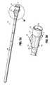 It is further contemplated that securingportion162 of rotor60 may define additional bores (not shown) to reduce the distance of travel byslider member146 to establish fluid communication betweenbore166 andport180. For example, the additional bore may be configured to establish fluid communication between the bore andport180 whenslider member146 is disposed at, for example, a midpoint between the proximal-most position and the distal-most position alongslit114. Furthermore, slit114 may provide a detent mechanism or tactile means (not shown) to indicate to the user the intermediate positions between the proximal-most and distal-most positions in which the additional bores are aligned withport180, thereby providing fluid communication therewith. It is further envisioned that securingportion162 ofrotor160 may define additional bores having various diameters. In this mariner, the user may control the fluid flow and fluid pressure by choosing the desired fluid flow and/or pressure associated with the bore. In addition, by arranging bores with various sizes in diameter, the user can gradually increase or decrease the fluid flow and fluid pressure in the body cavity. For example, whenslider member146 is at the proximal-most position alonglongitudinal slit114, securingportion162 ofrotor160 blocks fluid communication betweenport180 andtubular member150, as described hereinabove. However, asslider member146 is translated distally a predetermined amount, a bore having the smallest diameter aligns withport180 providing fluid communication withport180. Asslider member146 is translated farther distally for a predetermined amount, a bore with a larger diameter is aligned withport180. The diameter of bores gradually increases untilbore166 has a diameter equivalent to that ofport180. As such, asslider member146 reaches a distal-most position alonglongitudinal slit114,port180 aligns with the bore having the radius equivalent to that ofport180. The number of bores and the variation in the sizes of the diameter of the bores may be tailored to the application being performed. In this manner, the user may control the flow and pressure of the fluid, as well as establishing or cutting off fluid communication by a single hand. In addition, the snug fit ofrotor160 and the type of material chosen forrotor160 may also affect the pressure capacity ofvalve assembly130. It is also envisioned that the bores with various sizes in diameter may be communicated to provide a continuous flow of the fluid through the bores during adjustments or movement ofslider member146.