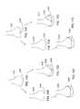 In a first step, shown inFIG. 172, a first jig is used to establish placement and alignment of femoral implant peg holes. In the example, the placement is flexed 5 degrees with respect to the sagittal femoral axis. In a second step, shown inFIG. 173, a second jig is used to establish placement pins for the distal cut jig. The second jig can havedifferent thicknesses17300 to accommodate composite thickness from the cut tibial surface. In a third step, as shown inFIG. 174, a distal cut jig is positioned based on the placement established by the previous jig. The distal cut jig can be patient-specific or standard. Lastly, as shown inFIG. 175, remaining cuts are performed with a chamfer cut jig. In the example, the anterior cut is not oblique.