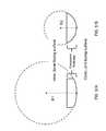 FIGS. 127A to 127F show an exemplary design of a knee implant, including a femoral component and a patella component, with a material cutaway region highlighted (darker) in certain figures. The placement of the patella and material removal was as follows: As shown inFIG. 127A, the flat bone-bearing surface of thepatella12700, was made parallel to theepicondylar axis12710 in the coronal view. As shown inFIG. 127B, the center plane of the patella implant was made collinear with theepicondylar axis12720. This allows for general positioning at the peak area of the trochlea. As shown inFIG. 127C, in this position the medial-lateral center or sulcus of the trochlea is identified12730, and the patella implant component is brought down so the lowest points are coincident12740. As shown inFIGS. 127D through 127F, the patella profile is swept along the sagittal curve of thetrochlear region12750.
