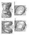 FIG. 41A depicts an axial view of a particular patient's femoral shape;FIGS. 41B through 41V depict overlays of an implant component's articulating surface over the particular patient's femoral shape in axial (FIGS. 41B-41N) and sagittal (FIG. 410-41V) views;