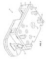 Referring again toFIG. 10, theinstrument140 also includes a heat-exchangingmodule147 having aslot148 for receiving the reaction vessel of the cartridge. Themodule147 is described in detail below with reference toFIG. 28. Theinstrument140 further includes a latch mechanism149 for latching alid150 over a cartridge. The cartridge nest141 includes alignment holes401 for receiving the legs of the cartridge. The alignment holes401 ensure proper positioning of the cartridge in the nest141 so that thepressure nozzles145,transducer92, and valve actuators142 fit into the corresponding ports in the cartridge and so that the reaction vessel fits into theslot148. Thetransducer92 should be positioned in theinstrument140 such that when the cartridge is placed in the nest141, the transducer contacts the bottom wall of the lysingchamber86, as shown in the cut-away view ofFIG. 5. In addition, the instrument may include a spring or similar mechanism to bias thetransducer92 against the wall of the lysingchamber86.