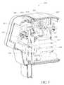 FIG. 14 shows a rear perspective view of internal scaffolding and some pinch valve pump bodies.