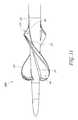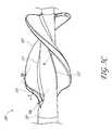 Moreover, increasing the number ofblades303 accordingly increases the number of shear regions at the free end of theblades303. As theimpeller300 rotates, the free ends of theblades303 induce shear stresses on the blood passing by theblades303. In particular, the tip or free edge of theblades303 can induce significant shear stresses. By increasing the overall number ofblades303, the number of regions with high shear stresses are accordingly increased, which can disadvantageously cause an increased risk of hemolysis in some situations. Thus, the number of blades can be selected such that there is adequate flow through the pump, while ensuring that theimpeller300 can still be stored within the sheath and that theblades303 do not induce excessive shear stresses. In various arrangements, for example, an impeller having three blades (such as the impellers shown inFIGS. 7, 9D, and 10A-10B) can achieve an appropriate balance between increased flow rate and reduced risk of hemolysis.