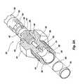 FIGS. 2A and 2B provide enlarged, partially sectioned, perspective views ofexemplary initiator22.Initiator22 preferably includes aninitiator body24 made of a material suitable for withstanding the rigors to which it will be subjected upon the initiator being triggered. Stainless steel, such as one of the AISI 300 stainless steel series, is particularly suitable for constructinginitiator body24. Ifinitiator22 is expected to be exposed to extreme environments, other stainless steels, stainless irons, or stainless alloys may be more suitable from which to constructinitiator body24. For example,initiator22 and/orinitiator body24 may be constructed from one of the AISI 17-PH stainless steel series which would provide a precipitation-hardened alloy that would be especially suitable for extreme environments.