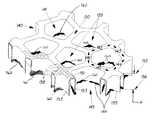 In some embodiments,sidewall portions153 end substantially uniformly such that thesecond surface155 coincides substantially completely withplane156. However, in some embodiments,sidewall portions153 can end in substantially non-uniformly, such as in a somewhat jagged pattern wherein various portions have differing height H dimensions. In such an embodiment,plane156 can be considered located at an average distance H determined bysecond surface155. In each embodiment, sidewall portions are considered to extend to a second surface in a second plane of the web.