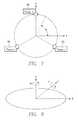 FIG. 7 depicts an X-Y-Z coordinate system used to locate the threeservos80,85,90, and defines the angles of rotation θ and α with respect to the X, Y and Z axes. Specifically, the angle θ is a rotation about the Z axis while the angle α is a rotation about the Y axis. The major axis of skew, inferred from the etch distribution data measured on a test wafer, lies in the X-Y plane ofFIG. 7 and is defined with respect to the Y axis by a certain value of the angle θ. Skew correction is performed by tilting thesupport plate55 about the skew axis by a particular tilt angle α.FIG. 8 depicts the X, Y, Z coordinates of the locations of the bail joints of the threeservos80,85,90 in one working example. The vertical motion required for each of the three servos may be computed directly from θ and α. Using the definitions ofFIGS. 7 and 8, thecomputer415 ofFIG. 5 employs the following algorithms to compute the vertical motion of each of the three servos from the angles α and θ in units of inches: