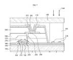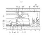 Theintermediate layer270 may be formed on thesource electrode230 and thedrain electrode250. That is, theintermediate layer270 may be formed on theinterlayer insulating film190 to cover thesource electrode230 and thedrain electrode250. Theintermediate layer270 may be formed on the element region A of thefirst substrate110. Theintermediate layer270 may be thick enough to completely cover thesource electrode230 and thedrain electrode250. Theintermediate layer270 may be formed of an organic material or an inorganic material. For example, theintermediate layer270 may include photoresist, acrylic-based polymer, polyimide-based polymer, polyamide-based polymer, siloxane-based polymer, polymer containing photosensitive acryl carboxyl, novolak resin, alkali soluble resin, silicon oxide, silicon nitride, silicon oxynitride, silicon oxycarbide, silicon carbonitride, aluminum, magnesium, zinc, hafnium, zirconium, titanium, tantalum, aluminum oxide, titanium oxide, tantalum oxide, magnesium oxide, zinc oxide, hafnium oxide, zirconium oxide, titanium oxide, etc. These may be used alone or in various combinations thereof. According to other exemplary embodiments, theintermediate layer270 that covers the TFT may not be provided, depending on the material, dimensions, etc. of theplanarization layer290 to be formed later.