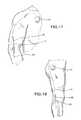 FIG. 16 is a perspective view of a human torso and arm showing the location of the leads for two embodiments of the invention.