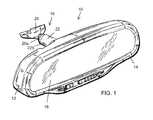 Optionally, the mirror assembly may include one or more other accessories at or within the mirror casing, such as one or more electrical or electronic devices or accessories, such as antennas, including global positioning system (GPS) or cellular phone antennas, such as disclosed in U.S. Pat. No. 5,971,552, a communication module, such as disclosed in U.S. Pat. No. 5,798,688, a blind spot detection system, such as disclosed in U.S. Pat. Nos. 5,929,786 and/or 5,786,772, transmitters and/or receivers, such as a garage door opener or the like, a digital network, such as described in U.S. Pat. No. 5,798,575, a high/low headlamp controller, such as disclosed in U.S. Pat. Nos. 5,796,094 and/or 5,715,093, a memory mirror system, such as disclosed in U.S. Pat. No. 5,796,176, a hands-free phone attachment, a video device for internal cabin surveillance and/or video telephone function, such as disclosed in U.S. Pat. Nos. 5,760,962 and/or 5,877,897, a remote keyless entry receiver, lights, such as map reading lights or one or more other lights or illumination sources, such as disclosed in U.S. Pat. Nos. 6,690,268; 5,938,321; 5,813,745; 5,820,245; 5,673,994; 5,649,756; 5,178,448; 5,671,996; 4,646,210; 4,733,336; 4,807,096; 6,042,253; 5,669,698; 7,195,381; 6,971,775 and/or 7,249,860, microphones, such as disclosed in U.S. Pat. Nos. 6,243,003; 6,278,377 and/or 6,420,975; and/or U.S. patent application Ser. No. 10/529,715, filed Mar. 30, 2005; and/or International Publication No. WO 2004/032568, speakers, antennas, including global positioning system (GPS) or cellular phone antennas, such as disclosed in U.S. Pat. No. 5,971,552, a communication module, such as disclosed in U.S. Pat. No. 5,798,688, a voice recorder, a blind spot detection system, such as disclosed in U.S. Pat. Nos. 7,720,580; 7,038,577; 6,882,287; 5,929,786 and/or 5,786,772, transmitters and/or receivers, such as for a garage door opener or a vehicle door unlocking system or the like (such as a remote keyless entry system), a digital network, such as described in U.S. Pat. No. 5,798,575, a high/low headlamp controller, such as a camera-based headlamp control, such as disclosed in U.S. Pat. Nos. 5,796,094 and/or 5,715,093, a memory mirror system, such as disclosed in U.S. Pat. No. 5,796,176, a hands-free phone attachment, an imaging system or components or circuitry or display thereof, such as an imaging and/or display system of the types described in U.S. Pat. Nos. 7,526,103; 7,400,435; 6,690,268 and 6,847,487; and/or U.S. provisional application, Ser. No. 60/618,686, filed Oct. 14, 2004, and/or U.S. patent application Ser. No. 11/239,980, filed Sep. 30, 2005, now U.S. Pat. No. 7,881,496, a video device for internal cabin surveillance (such as for sleep detection or driver drowsiness detection or the like) and/or video telephone function, such as disclosed in U.S. Pat. Nos. 5,760,962 and/or 5,877,897, a remote keyless entry receiver, a seat occupancy detector, a remote starter control, a yaw sensor, a clock, a carbon monoxide detector, status displays, such as displays that display a status of a door of the vehicle, a transmission selection (4wd/2wd or traction control (TCS) or the like), an antilock braking system, a road condition (that may warn the driver of icy road conditions) and/or the like, a trip computer, a tire pressure monitoring system (TPMS) receiver (such as described in U.S. Pat. Nos. 6,124,647; 6,294,989; 6,445,287; 6,472,979; 6,731,205 and/or 7,423,522, and/or an ONSTAR® system, a compass, such as disclosed in U.S. Pat. Nos. 5,924,212; 4,862,594; 4,937,945; 5,131,154; 5,255,442 and/or 5,632,092, and/or any other accessory or circuitry or the like (with all of the above-referenced patents and PCT and U.S. patent applications being commonly assigned to Donnelly Corporation, and with the disclosures of the referenced patents and patent applications being hereby incorporated herein by reference in their entireties).