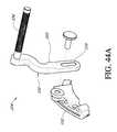 FIGS. 44A and 44B illustrate various features of a cuttingblock assembly224 for resecting an anatomical structure. The cuttingblock assembly224 illustrated inFIGS. 44A and 44B is a leftcutting block assembly224. The cuttingblock assembly224 can be optimized, for example, for resecting the proximal tibia of the left leg of the patient. The cuttingblock assembly224 preferably can be configured to be moveable from a first position spaced away from an anterior surface of the tibia to a second position up against the tibia (e.g. as seen inFIGS. 48 and 49). A rightcutting block assembly224 can be formed as a mirror image of the leftcutting block assembly224.