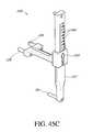 FIGS. 45A-C illustrate various features of themidline probe assembly226. Themidline probe assembly226 can be used for determining a resection depth and/or an A/P offset of thetibial assembly212. Themidline probe assembly226 can comprise, for example, mountingpins336 that can be received in corresponding recesses338 (seeFIG. 48) in a proximal aspect of thetibial jig assembly212, for example on a proximal surface of themount bar assembly220. The midline probe assembly can further comprise a set ofmarkings340 for helping to identify an A/P offset, along with anadjustable probe bar337 and guidebar339, theguide bar339 having an opening for receiving theprobe bar337.