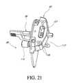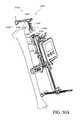 Referring toFIGS. 34 and 38, thetibial jig assembly212 can include a referencesensor device interface228 by which thereference sensor device16 can be coupled to thetibial jig assembly212, and a surgicalorientation device interface230 by which thesurgical orientation device14 can be coupled to thetibial jig assembly212. Thereference sensor device16 can preferably be coupled with thetibial jig assembly212 such that during a total knee replacement procedure, thereference sensor device16 follows the movement of the tibia, and generally does not move independently with respect to the tibia. In some embodiments, referencesensor device interface228 can comprise a plurality of posts disposed on a side surface of the mountingbar assembly220 for connecting with thereference sensor device16. The configuration of the referencesensor device interface228 can enable low profile mounting of thereference sensor device16 beneath other components of thetibial jig assembly212, such that thereference sensor device16 can be located between at least one moving component of thetibial jig assembly212 and the tibia of the patient.