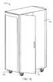 FIG. 12 depicts an embodiment of anapparatus1200 for sanitizing a plurality of PEDs. Theapparatus1200 comprises a cabinet withdoors1202 for accessing an enclosure. The enclosure is configured to receive two or more PEDs and sanitize two or more PEDs. In one embodiment, the enclosure of theapparatus1200 is configured to receive and/or sanitize a large number of PEDs. For example, theapparatus1200 may be configured to sanitize10 or more PEDs simultaneously. As another example, theapparatus1200 may be configured to sanitize30 or more PEDs simultaneously. Theapparatus1200 may operate according to any of the operations, functions, or variations described in relation to the embodiments above, but may be configured to perform the operations for a larger number of PEDs. For example, theapparatus1200 may receive, sanitize, and charge multiple PEDs at the same time.