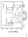 FIG. 3A shows the chromatograms obtained at the first detector (Sensor 1) and the second detector (Sensor 2) when the valve is adjusted to connect the first and second columns together (as shown inFIG. 2A). The analytes are (1) pentane; (2) octane; and (3) nonane. The retention time of the three alkanes at the first detector is 35 sec, 552 sec, and 1,381 sec, respectively. Flow through the valve is discontinued by adjusting the three-way valve to prevent flow from the first column into the second column. The disconnection occurs two different times to cease flow of analytes from the first column. The first disconnection is from 20 sec to 140 sec, and the second from 180 sec to 300 sec.