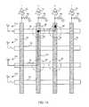 FIG. 14 is a component diagram of a portion of a conductive multi-touch touch pad or touchscreen panel illustrating a potential problem with multi-touch touch pad or touchscreen panels.