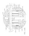 In various embodiments, referring now toFIGS. 347 and 348, a flexibletissue thickness compensator15720 can comprise a circular or annular flexibleouter ring15724, for example. In certain embodiments, theouter ring15724 may be configured such that it is not captured within staples deployed from thesurgical stapler15600; rather, in at least one embodiment, theouter ring15724 may be positioned radially outwardly with respect to the outer row ofstaple cavities15613. In at least one such embodiment, thetissue thickness compensator15720 can comprise a plurality of tags, such asinner tags15622 andouter tags15623, for example, extending therefrom such that the tags can be at least partially captured within the staples as they are being deformed. More particularly, referring primarily toFIG. 347, eachinner tag15622 can comprise a head which is positioned over astaple cavity15612 defined in thesurgical stapler15600 wherein the head can be attached to theouter ring15724 by aneck15726, for example, and, similarly, eachouter tag15623 can comprise a head which is positioned over astaple cavity15613 defined in thesurgical stapler15600 wherein the head can be attached to theouter ring15724 by aneck15727, for example. In various embodiments, the heads of theinner tags15622 and theouter tags15623 can comprise any suitable shape, such as round, oval, and/or elliptical, for example. Thenecks15726 and/or15727 can also comprise any suitable shape wherein, in at least one embodiment, thenecks15726 connecting the heads of theinner tags15622 to theouter ring15724 can be configured to extend between adjacent outerstaple cavities15613 such that thenecks15726 are not captured within the staples deployed from theouter staple cavities15613. In certain alternative embodiments, a tissue thickness compensator can comprise a circular or annular flexible inner ring, a circular or annular flexible outer ring, and, in addition, a plurality of tags which can be connected to the inner ring and/or the outer ring. In at least one embodiment, certain tags can be connected to the inner ring and certain other tags can be connected to the outer ring. In certain embodiments, at least some of the tags can be connected to both the inner ring and the outer ring. In any event, further to the above, theinner ring15624 of thetissue thickness compensator15620, theouter ring15724 of thetissue thickness compensator15720, and/or any other suitable tissue thickness compensator, can be configured to resiliently expand and/or contract in order to accommodate the expansion and/or contraction of the tissue that it has been implanted against. Furthermore, although various embodiments are described herein as comprising circular or annular support rings, a tissue thickness compensator can comprise any suitably-shaped support structure for connecting the tags thereto. In various embodiments, further to the above, the circular knife advanced by the surgical stapler to cut the tissue captured between the anvil and the support portion can also cut the buttress material. In at least one such embodiment, the knife can separate the inner support ring from the tags by cutting the necks thereof, for example.