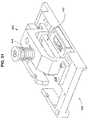 Returning toFIG. 32, shouldelectrical contact carrier448 make contact with printedcircuit board24, radio-frequencypower delivery apparatus440 includessprings450 which will compress upon reaching a load sufficient to overcome the bias/compression force ofsprings450, with such force being lower than the force which may damage printedcircuit board24. In this manner, printedcircuit board24 may be protected from damage upon engagement withelectrical contact assembly442.Apparatus440 also has the function of aligningcontact carrier448 toaperture32 ofcartridge member18. In particular, thesprings450 and pins454 (shown in phantom) are designed to allow thecontact carrier448 to float and align to theaperture32 ofcartridge member18 ascarrier448 entersaperture32, then return thecontact carrier448 to a straight position when retracted.