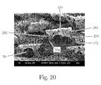 FIGS. 18-20 are scanning electron micrographs of a laminate web, the tufts having caps.