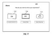 FIG. 17 illustrates an interface for sharing gameplay, in accordance with an embodiment of the invention. Theinterface1700 as shown includes various selectable icons to facilitate sharing to friends of a user, e.g. members of a social graph of the user. In one embodiment, theinterface1700 can be accessed from a dedicated button on a controller device. When the button is pressed during gameplay, theinterface1700 can be presented to enable the user to share their gameplay.