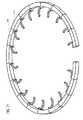 The first50 and the second55 pluralities of projections may extend from the first31 and the second32 body sections, respectively, from areas that are adjacent to or are bordering the radially outer circumference of thecircumferential groove45. The first50 and the second55 pluralities of projections may extend from theopposite side walls48,49 laterally defining thegroove45.