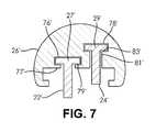 As best illustrated inFIGS. 3 and 4,control member26 defines first76 and second78 recesses that are sized and configured to receive a portion of the first22 and second24 plungers, respectively. In the illustrated embodiment,control member26 includes a first rampedsurface80 that defines one wall of thefirst recess76 and a second rampedsurface82 that defines one wall of thesecond recess78. Therecesses76,78 are oriented opposite one another with respect to ahypothetical line84 such that the ramped surfaces80,82 extend upward and away from each other. This arrangement of therecesses76,78 ensures that only one of theplungers22,24 is fully seated in itsrespective recess76,78 at any given time as thecontrol member26 is moved between its first, proximal and second, distal positions. In alternative embodiments, an example of which is illustrated inFIG. 7, each of therecesses76′,78′ defines a shoulder that forms a track, such asshoulders77′ and81′ and tracks79′ and83′. In these embodiments, each of thetracks79′,81′ receives a flange defined by or disposed on the upper portion of therespective plunger22′,24′. Thus,flange27′ is received bytrack79′ andflange29′ is received bytrack81′. Each of theflanges27′,29′ rides within therespective track79′,81′ such that thecontrol member26′ pushes therespective plunger22′,24′ upward and pulls theplunger22′,24′ downward with appropriate movement of thecontrol member26′, as described above. In these alternative embodiments, the tracks can be formed as recesses within the control member, as a recess defined between multiple pieces that are assembled to form the control member, or in any other suitable manner. These alternative embodiments avoid reliance on recoil of a tubular member compressed by a plunger to move the plunger back to its upper position.