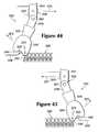 On the other hand, if thefeeder3220 is moving in the opposite feeding direction as indicated byarrow3271 inFIG. 45, then friction between theknit component3260 and thebulbous end3261 can cause thesecond portion3249 to rotate counterclockwise as indicated byarrow3273. Thus, as thefeeder3220 moves in thefeeding direction3271, thesecond projection3264 can push against the stitches lying ahead of thedispensing tip3246 as indicated byarrow3275. Accordingly, thesecond projection3264 can provide ample clearance for incorporation of thestrand3206 into theknit component3260.