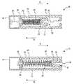 Turning now toFIGS. 7a-8b, damping systems that can be incorporated into the above-describedlancing device10 are further described according to the various embodiments of the present invention. Such damping systems assist in preventing or inhibiting the lancingmechanism29 from causing a second, unintended skin puncture to be made by thelancet assembly30. The damping system includes a plurality of springs in which a first spring is located within at least a second spring. For the purposes of this disclosure, the term “within” is defined as either “partially enclosed by” (such as the two-spring embodiment described above) or “between” (such as the three-spring embodiment described below with respect toFIGS. 8a-b).
