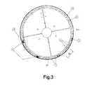 A plurality of longitudinal grooves6 are formed on the outside of cylinder C and house Nd—Fe—Bpermanent magnets7 arranged in longitudinal rows with alternate N-S polarity (FIG. 1). Cylinder C is introduced in a shell M of non-magnetic material, for example AISI 316 stainless steel having a thickness Sm of 4 mm, closed at its ends by two flanges F (also of AISI 316) having flanged hubs MF provided with seats forbearings4. At least one of hubs MF is also provided with means, for example a toothed gear R, for receiving from a motor (not shown) the motion to drive into rotation shell M.
