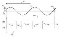FIG. 7 shows a plot of traffic on two networks and an alternating current waveform.