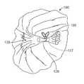 FIGS. 7A and 7B show one example of an exploded, assembly view of a device assembly100 (where a fluid transport member is omitted for the sake of clarity). As shown, thedevice assembly100 can include a material skin comprising two layers of material that form anupper skin122 and alower skin124. As noted herein, the layers can be joined to form a seam. Clearly, the presence of a seam is optional and some variations of devices under the present disclosure will not include a seam or will have similar types of joined regions of material to preserve the skin as a physical boundary for the contents of the reservoir. Again, thedevice assembly100 is shown in the shape that eventually assumes an oblate spheroid shape. However, other shapes are within the scope of this disclosure. In one variation, the skin comprises substantiallyinelastic materials122 and124 that are joined around a perimeter leaving openings as discussed herein. It will be understood that, the shape of the device referred to as an oblate spheroid for descriptive purposes. In other embodiments wherein one or more devices may be joined to comprise a multi-bodied assembly, each individual device can be assembled from one or more sheets of film-like material that are cut to a pre-designed shape.FIG. 7A shows thedevice100 in an inside-out configuration in mid-assembly. As shown, the invaginatedportion126 can be secured with afilament release material106 and/or a sealingrelease material106 located within arelease area128.FIG. 7B illustrates an exploded view of the construct ofFIG. 7A after the structure is inverted and a filler material is inserted into a reservoir formed by theskin materials122 and124.