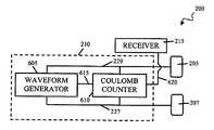Coulomb counter610 is a device that measures the delivery of charge byelectrodes205,207 during a stimulation pulse. Coulomb counter610 can operate, e.g., by measuring a voltage drop across a low impedance series resistance on one or both ofleads229,227.Coulomb counter610 is in direct or indirect data communication withreceiver215 over adata path620.Data path620 is capable of relaying a charge setting received atreceiver215 tocoulomb counter610.Data path620 can include memory325 (not shown).