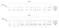 FIG. 7 illustrates an example configuration of DL and UL sub-frames in a system based on the duplexing method in accordance with various embodiments; and