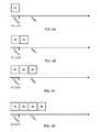FIGS. 9A-9G illustrate effects of an embodiment smoothener on the download of layers of media intervals of a media presentation over time under fluctuating network conditions.FIGS. 9A-9G illustrate downloaded layers of media intervals of a media presentation over time in a scenario in which a steady state bandwidth of 768 kbps jumps to 2.5 mbps for one second, then decreases to 0 kbps for four seconds, then jumps to 2.5 mbps for two seconds, before returning to steady state at 768 kbps and the impact of checking a download time constraint, an adjacent media segment layer number constraint, and an upswitch constraint, as well as optionally a smoothing constraint, before downloading a layer. InFIGS. 9A-9G the smoothening time period may be 10 seconds. For illustration purposes each interval of the media presentation includes four layers, a base layer labeled “a”, a first enhanced layer labeled “b”, a second enhanced layer labeled “c”, and a third enhanced layer labeled “d.” The layers of the media presentation are each represented as being of equal bandwidth (e.g., 256 kbps each) and each media interval of the media presentation is of an equal duration (e.g., 1 second). λ=0.5 so that E=0.18 s. The download constraint succeeds if S>P+0.18.